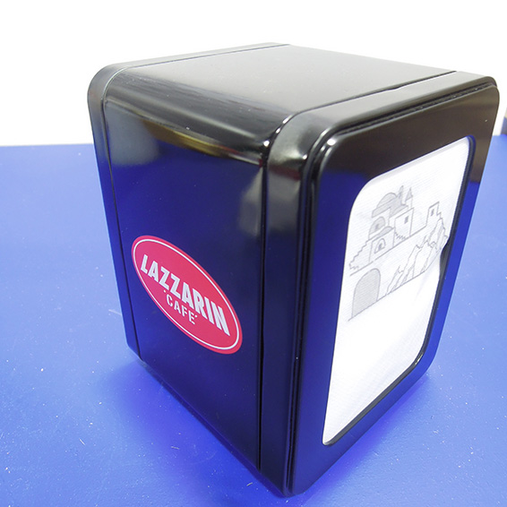 PortatovaglioliPortatovaglioli con porta zucchero: sono dispenser in banda stagnata che è possibile avere neutri oppure con il vostro logo stampato in serigrafia, in digitale oppure in offset.